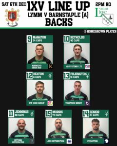 Having prevailed over a very competitive Taunton Titans in a thrilling and entertaining match-up, last time out Lymm will board the bus on Friday evening confident that they have a squad capable of causing an upset in North Devon, where Barnstaple will be firm favourites given their current, unblemished home record. The Lymm squad shows a number of changes from last time out with, once again, the Friday departure leading to a number of players being unavailable for the trip. Overall, 6 players – Alfie Simpson, Sam Wicks, James Yates, Ben Thompson, Harry Wadsdell and Tom Shard – have been replaced by fit-again Jack Reynolds; available-again Dylan Hodkinson; and Matt Hill, Rory Cartlidge, Alex Mukherjee and Cormac Nolan, all promoted from the 2nd XV. It is pleasing to see Rory Cartlidge back in the First XV squad after a torrid time with injury and it is especially pleasing to welcome record points scorer Cormac Nolan back after more than 2 years out injured.