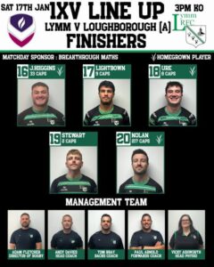 Lymm’s first away fixture of 2026 takes them on the relatively short, by this season’s standards, 86-mile excursion to Loughborough, to play against Loughborough Students. When the two teams met at Crouchley Lane in September, they delivered a feast of running rugby with 87 points and 13 tries scored between them, in what was a fast-paced, frantic affair which, in the end, Lymm were somewhat relieved to win. Indeed, with Lymm’s 15 matches so far this season averaging 64 points scored and Loughborough’s 67, it would be a brave person who bet against a scoring rate of more than 1 point per minute on Saturday!