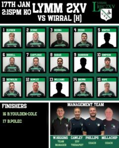 The Lymm squad for the match shows just 3 changes from the previous week with captain Nathan Beesley returning for his first runout since 8th November, and James Pitcher and Max Ure replacing the unavailable Rob Makin and Rhys Lilly.