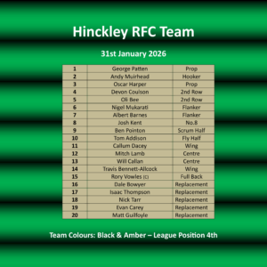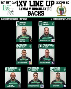 Lymm RFC v Hinckley RFC – Saturday 31st January 2026