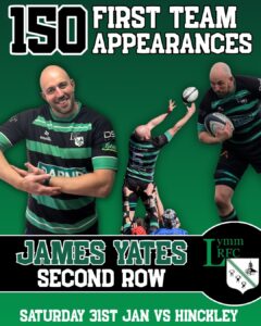 James Yates (2nd Row Forward) will make his 150th appearance for Lymm and Rob Makin (Hooker) will be making his 100th appearance. A great achievment.