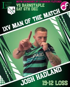 “We played the conditions in the 1st half really well and probably created more chances than Barnstaple. I thought we were unlucky to be behind at halftime. The wind and underfoot conditions continued to worsen as the game progressed. Unfortunately, after the break we couldn’t find our attack shape like we did in the 1st half, and the game became very scrappy.”