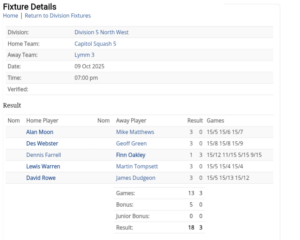 Squash Match Report | Thursday October 9 2025