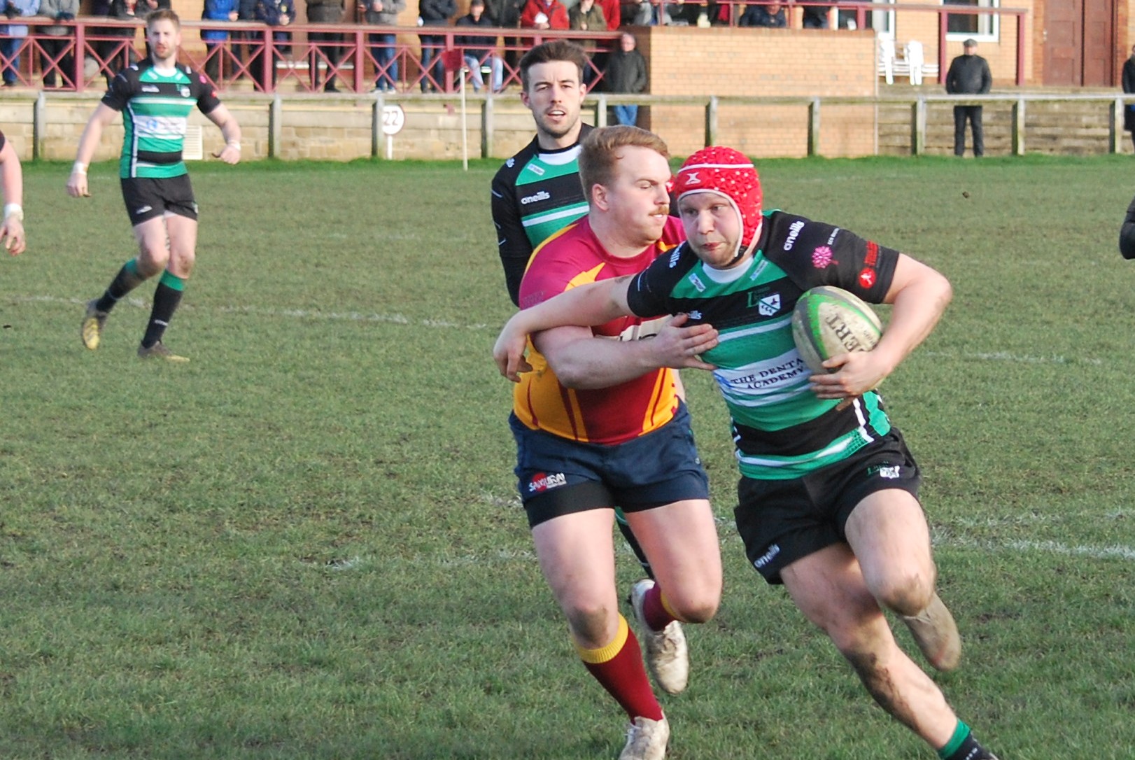 With about 10 minutes remaining, Oli Higginson, who had been outstanding for Lymm all afternoon in both attack and defence, breached the Sandal defence, running from the Lymm 22 well into Sandal territory, where he met their last defender, who was only able to halt his momentum with a high tackle. Another Sandal yellow card and a penalty for Lymm followed, the subsequent touch kick presenting Lymm with a perfect attacking platform well inside the Sandal 22. Unfortunately, the throw into the lineout was adjudged not straight (it had been awful conditions for lineouts all afternoon) and the momentum was halted. This proved to have been Lymm’s final opportunity to secure the win.