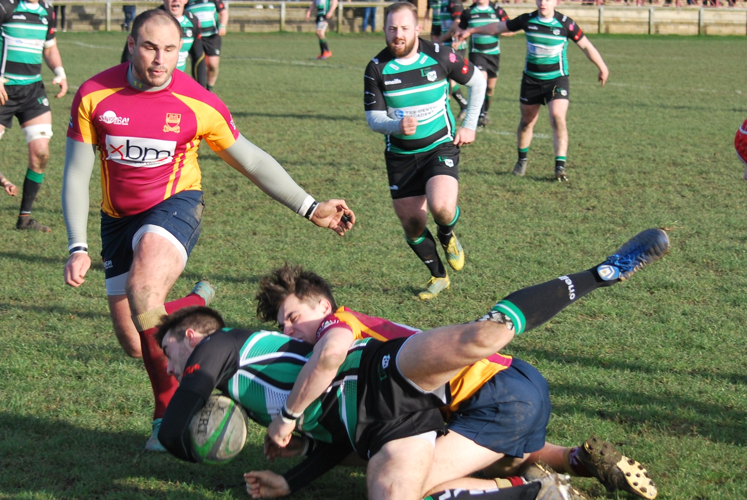 As the match entered its final knockings, the play was camped in the Lymm 22, where conditions were such that the kicking option for Lymm to clear their lines was no longer viable. Keeping the ball in hand was tricky and, eventually, Sandal won turnover ball and, with the final play of the match, managed to squeeze over just to the right of the posts for their bonus point try, denying Lymm of a losing bonus point in the process. Full Time 31-19