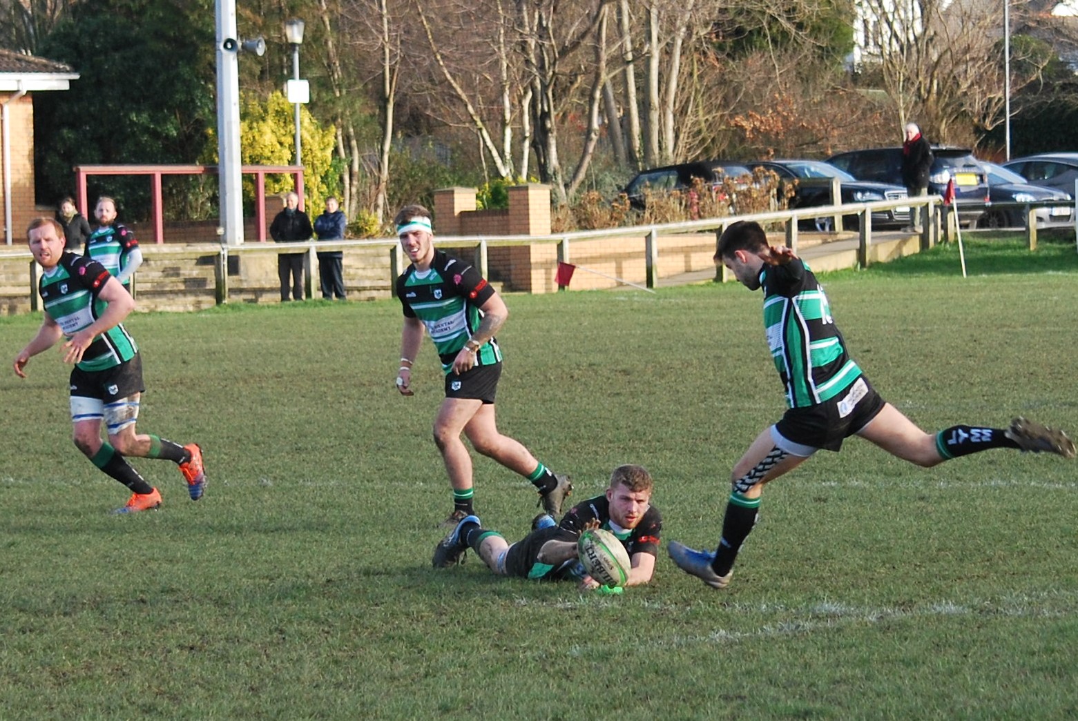 From the restart, Sandal collected the ball well, but in moving from the subsequent ruck, the ball went to ground. Lymm’s Watson pounced on the loose ball and ran in, virtually unopposed, from 22m, touching down a couple of metres in from the right-hand touchline. Cormac Nolan was unable to make the difficult conversion. 7-5